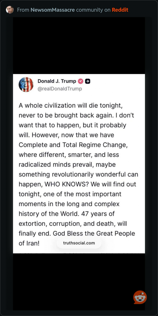 Trump: “A whole civilization will die tonight, never to be brought back again”